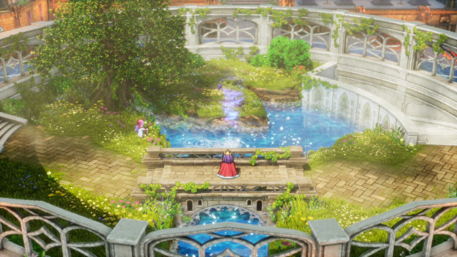 A Dragon Quest I & II HD-2D Remake követi azt az utat, amit a Dragon Quest III remake és az Octopath széria már kitapostak. A klasszikus JRPG-ket egy teljesen új körítésben kapjuk, ahol a hátterek és a világ egyes elemei gyönyörű 3D-s modellekből állnak össze, míg a karaktereket és a szörnyeket gyönyörű pixelart sprite-ok illusztrálják. A keverék pont olyan csodálatosan működik itt is, mint ahogy a Dragon Quest III HD-2D Remake-nél: a királyságok hatalmas kastélyai gyönyörű árnyékokat vetnek a tavaszi szélben lengedező gyepre, míg a világtérkép óceánja gyémántos csillogással válaszol a nap köszöntőjére. A világ lenyűgöző, mind grafikai tálalás, mind dizájn tekintetében.