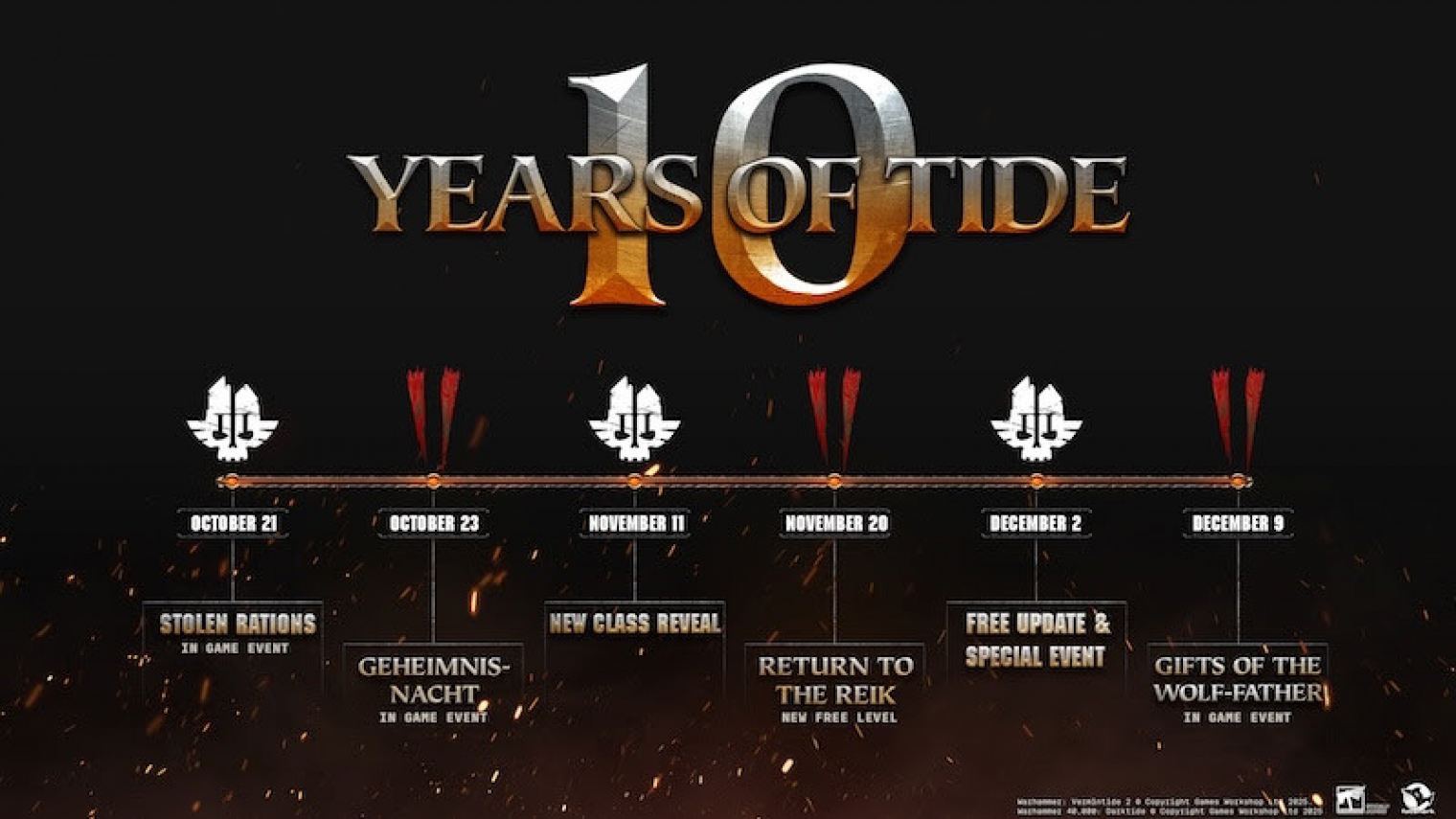 A Warhammer-nap árnyékában az Owlcat mellet a Fatshark is elhozta a maga ünnepi meglepetését: tíz éve indult útjára a stúdió legendássá vált Tide-sorozata, és a jubileumot méltó módon, egy több mint egy hónapon át tartó eseménysorozattal ünneplik a fejlesztők. A svéd csapat különleges évfordulós ütemtervet tárt a rajongók elé, amely új tartalmakat, kihívásokat és egy nagy leleplezést is tartalmaz - a Darktide következő játszható kasztját ugyanis november 11-én mutatják be.