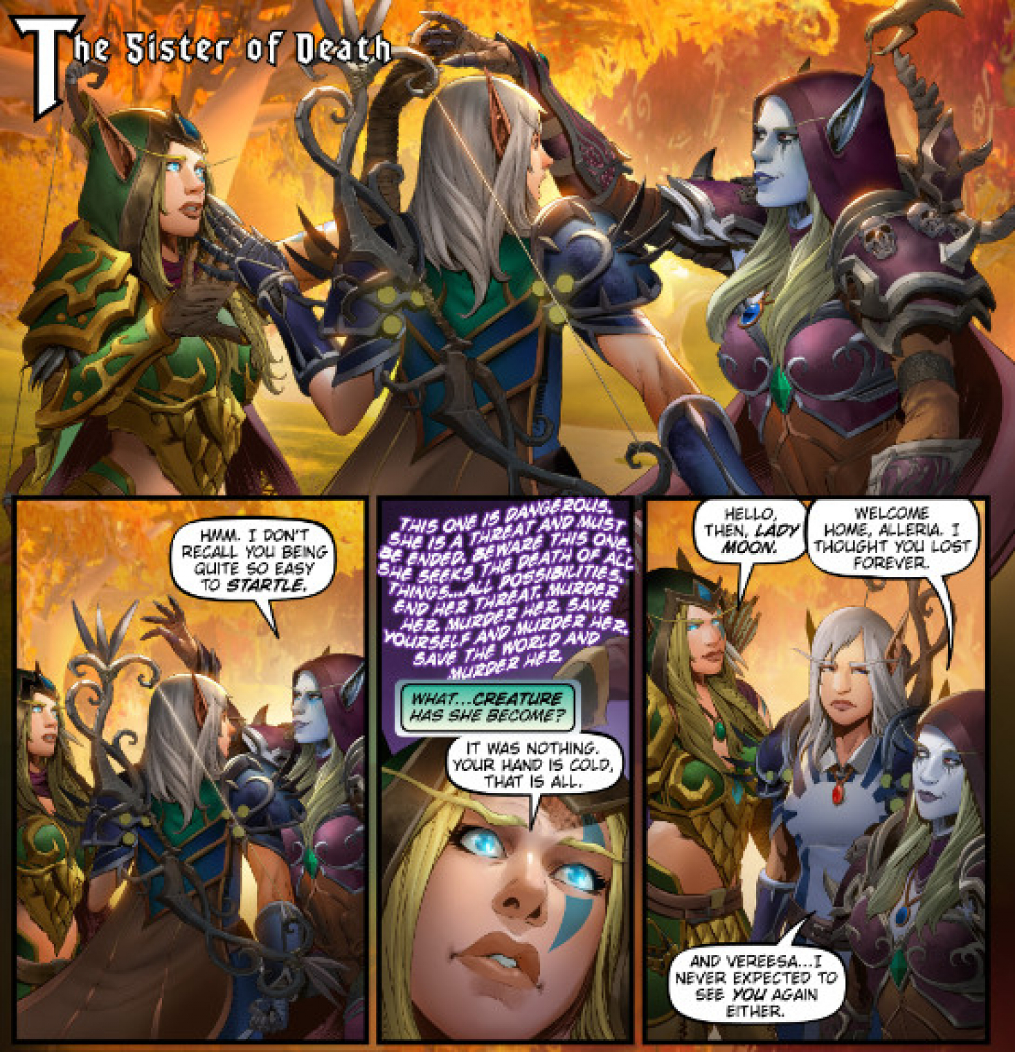 Egyrészt megjegyzi, hogy komoly ára van az ő felbukkanásának, másrészt kihangsúlyozza, hogy a Shadowlands birodalmai nem úgy működnek, mint hittük. Ez két fontos dolgot alapoz meg: Sylvanasra komoly következmények várnak, amiért elhagyta posztját, és valamilyen formában érinteni fogjuk még a Warcraft univerzum túlvilágát.