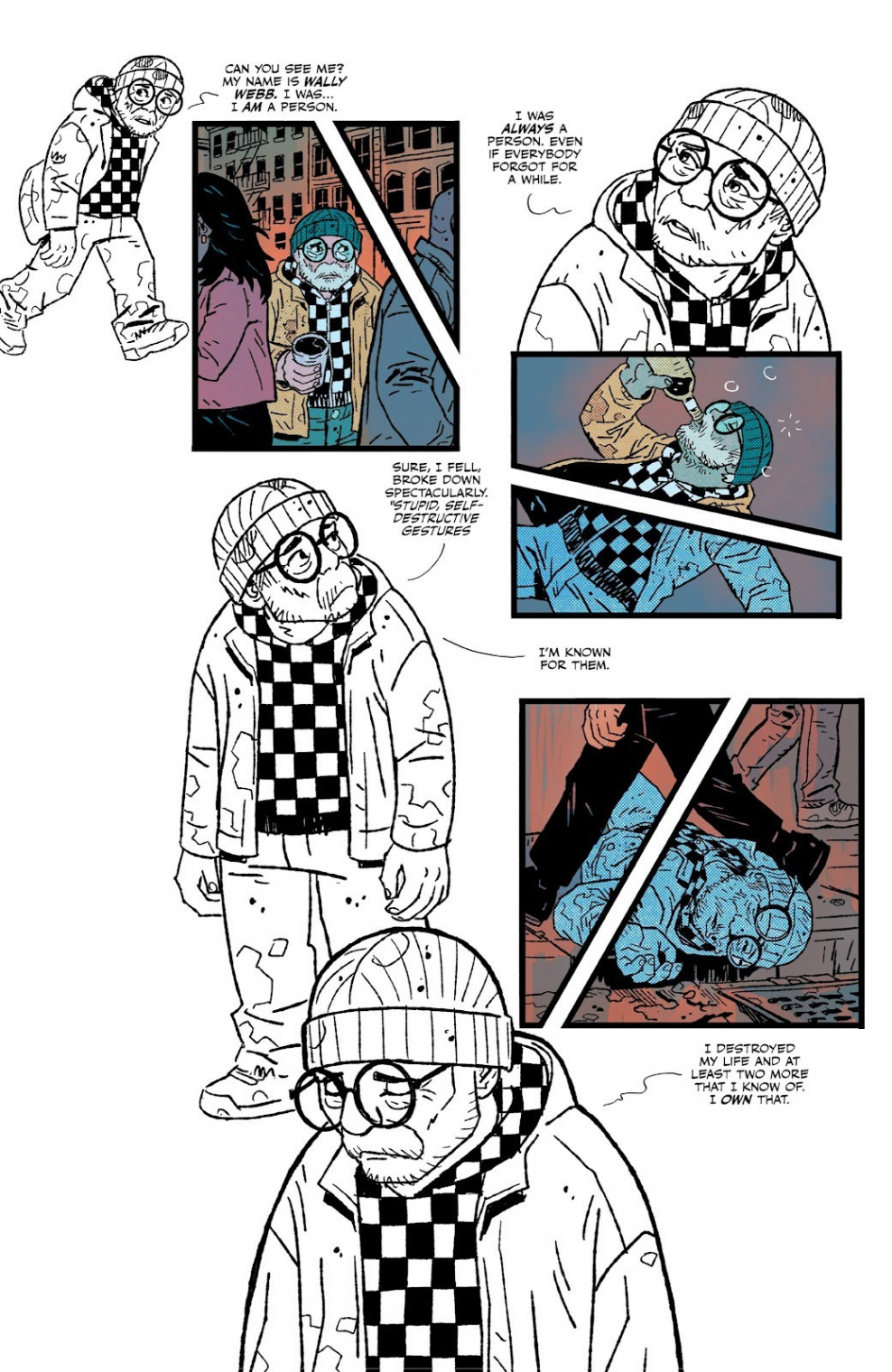 A nyolcadik szám viszont most minden eddiginél tovább megy. A történet középpontjában Wally Webb áll, egy egykori képregényrajzoló, aki mára hajléktalanná vált. A történet nemcsak érzelmileg megterhelő, hanem formailag is rendkívül erős: a képregény oldalszerkezetét, az úgynevezett "guttereket", vagyis a panelek közötti üres tereket használja metaforaként azok számára, akik a "fő történeten" kívül rekedtek.
