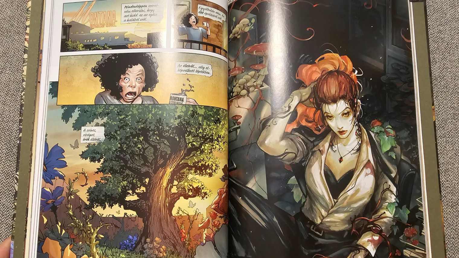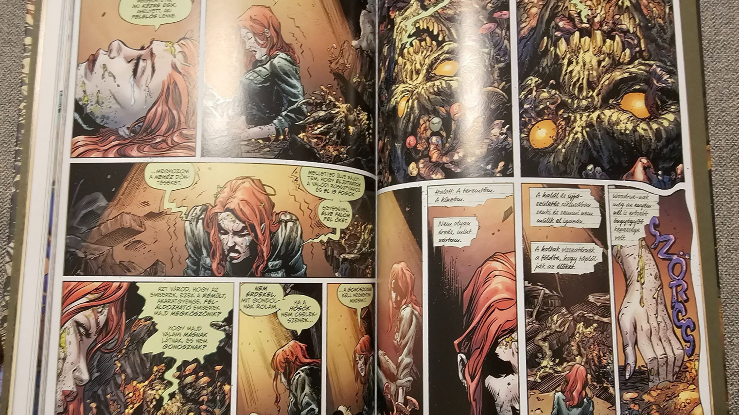 Rajzban a kötet akkor a legerősebb, amikor hagyja, hogy a szépség és az undor egyszerre legyen jelen. Méregcsók testén a növényi jelenlét nem szép kis extra, hanem zavaró, idegen, szinte folyamatosan kényelmetlen jelenség. Ettől Pamela mindig kicsit kívül marad az emberin, még azokban a pillanataiban is, amikor a leginkább együtt lehetne érezni vele. Ez nagyon sokat hozzátesz ahhoz, hogy a karakter ne váljon sem túl romantikussá, sem túl könnyen szerethetővé. Ugyanakkor a kötet nem teljesen hibátlan. A vége felé érezhető egy vizuális váltás, ami valamennyire megtöri azt a hipnotikus, lassú romlást, amit addig a történet és a rajz együtt nagyon szépen épített.