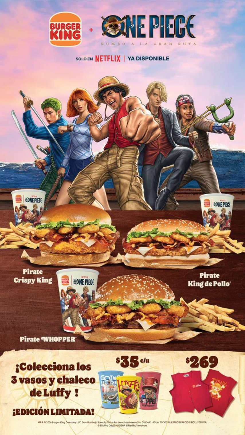 A Burger King Mexikó 2026 márciusában elindította a One Piece élőszereplős Netflix-sorozatához kapcsolódó promócióját, ami első ránézésre pont olyasmi őrültség, amire egy keményvonalas fan gondolkodás nélkül rámozdulna. A probléma csak az, hogy ez az egész jelenleg kizárólag Mexikóban érhető el, így a magyar rajongóknak legfeljebb az irigykedés marad. A kampány március 10-én rajtolt el, és nem valami apró, pár éttermes akcióról van szó, hanem egy országos kollabról, amely több mint 450 étteremben, az Auto-King egységekben és a kiszállítós platformokon is elérhető. A kínálatban három limitált menü szerepel, köztük a Pirate Whopper, a Pirate Crispy King és a Pirate King de Pollo.