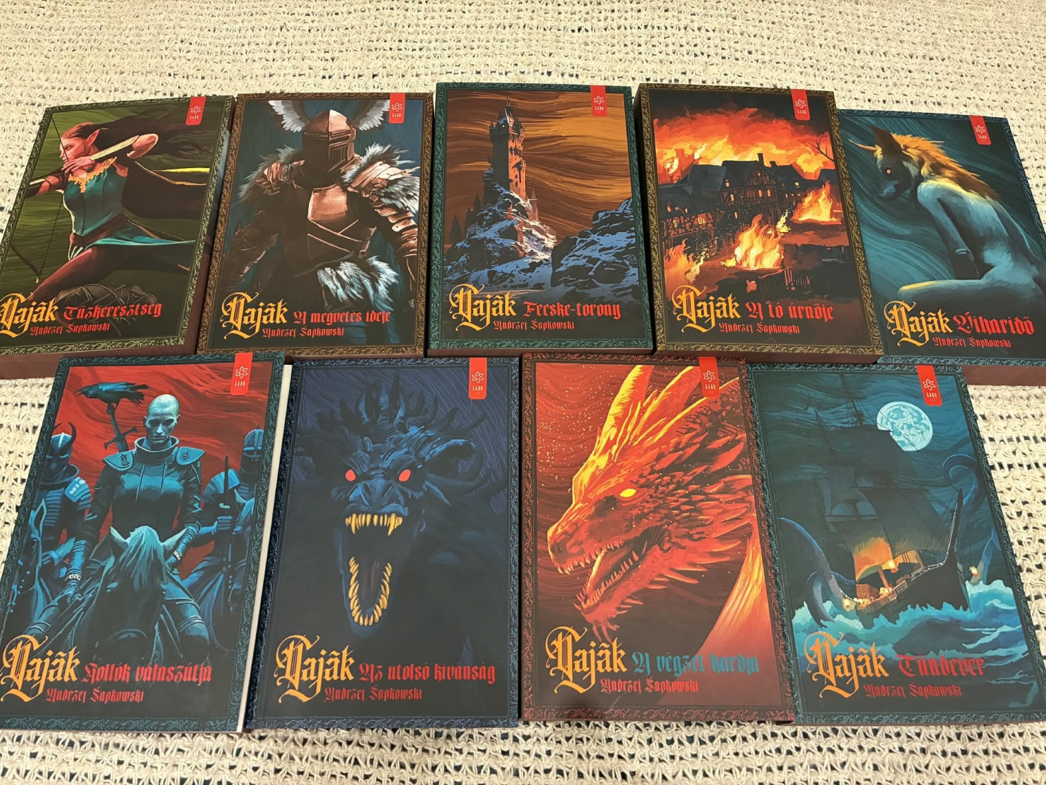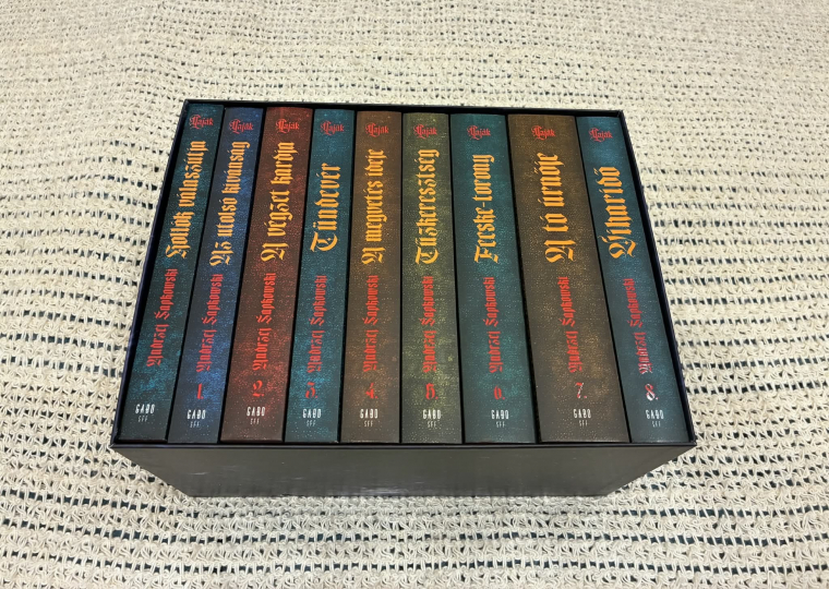 Sapkowski legújabb regénye a tökéletes belépési pont, kisebb léptékű ugyan, mint Geralt későbbi kalandjai, és nem is szövi át oly sűrűn az udvari intrika pókhálója, mint amazokat, de minden megvan benne, amiért ezt a regényfolyamot szeretni lehet. És nem utolsósorban előrevetíti, hogy a vajáknak később még lesz gondja a szebbik nemmel, főleg a varázslónőkkel. Elég valószínűtlen, hogy aki a Hollók válaszútjával kezd, utána ne kapna kedvet a többi kötethez, amelyeket a Gabo többféle kiadásban is elérhetővé tett. A mi kedvencünk egyértelműen az a különleges, dobozos díszkiadás, amely mind a kilenc regényt magában foglalja. A borítók egyetlen művész, Hegyi Péter keze munkáját dicsérik, míg a doboz grafikájáért Titkos Péternek jár az elismerés. A köteteket tetszés a gerincükkel kifele vagy befele is rendezhetjük, mindkét megoldás mutatós - különösen az utóbbi, mert így kirajzolódik a Ríviai Geraltot jelképező fehér farkas.