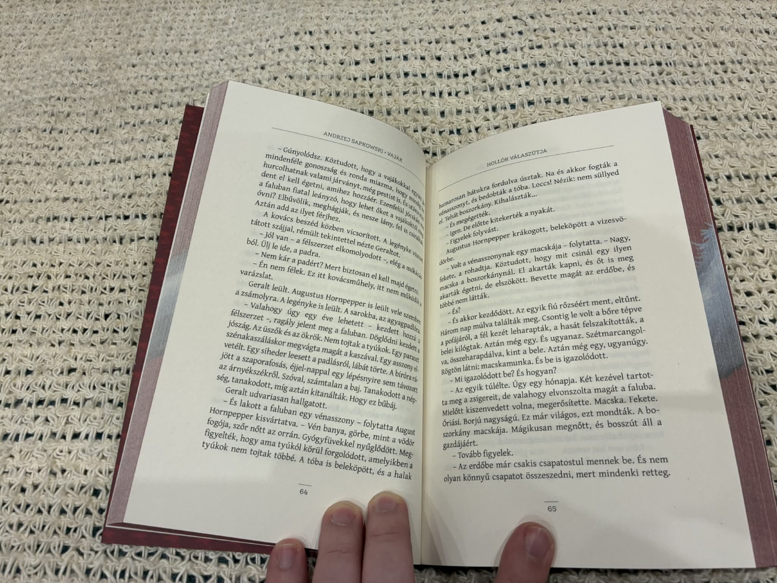Rég olvastam már Sakpowskit, utoljára valamikor a The Witcher 3: Wild Hunt megjelenése és a Netflix-féle Vaják sorozat első évadának premierje között. Persze nem eredetiben, mert a lengyelül csak annyit tudok, hogy Polak, Węgier - dwa bratanki, i do szabli, i do szklanki, oba zuchy, oba żwawi, niech im Pan Bóg błogosławi, valamint azt, hogy a tak igent jelent. Mindazonáltal a szerző jellegzetes stílusát a fordítás is vissza tudja adni, csak épp ennyi év távlatából már szinte elfelejtettem, hogy mennyire érzékletesek a karakterleírások, mennyire pattogósak, szellemesek a párbeszédek, melyek élesebben vágnak, mint egy novigradi borbély borotvája. De már azt is kezdett lassan a feledésbe merülni, hogy milyen mély gondolatok húzódnak meg a felszín alatt vagy épp ha az ember egyszer elkezdi valamelyik kötetet, utána alig bírja letenni.