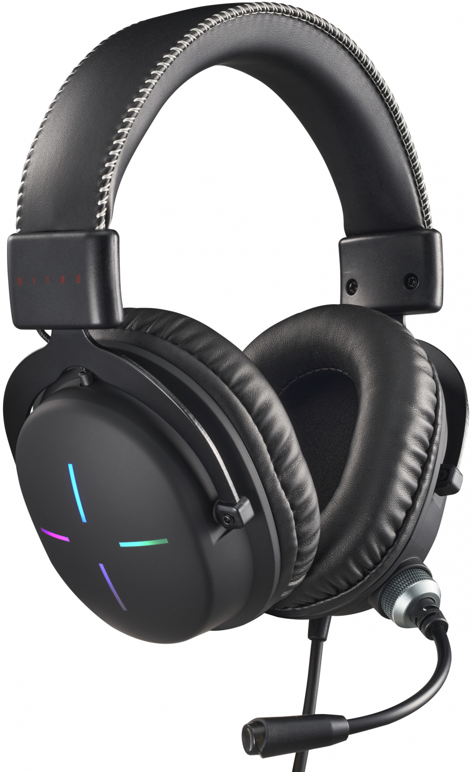 Mindig elismerően bólogatunk, ha olyan gamerperifériával van dolgunk, amit nem azzal próbál vagánnyá tenni a gyártója, hogy felcsicsázza mindenféle látványelemmel. A Nitro headset (NHW200 jelzéssel) fülkagylóin mindössze 4-4 színes vonal látszik négy irányban, és ettől máris jól néz ki az egypántos felépítésű füles. ezek persze nem szimpla festékcsíkok, hanem RGB-LED-eket rejtő dizájnelemek, ami kellőképpen visszafogott, mégis nagyon látványos - ideális egyensúly.