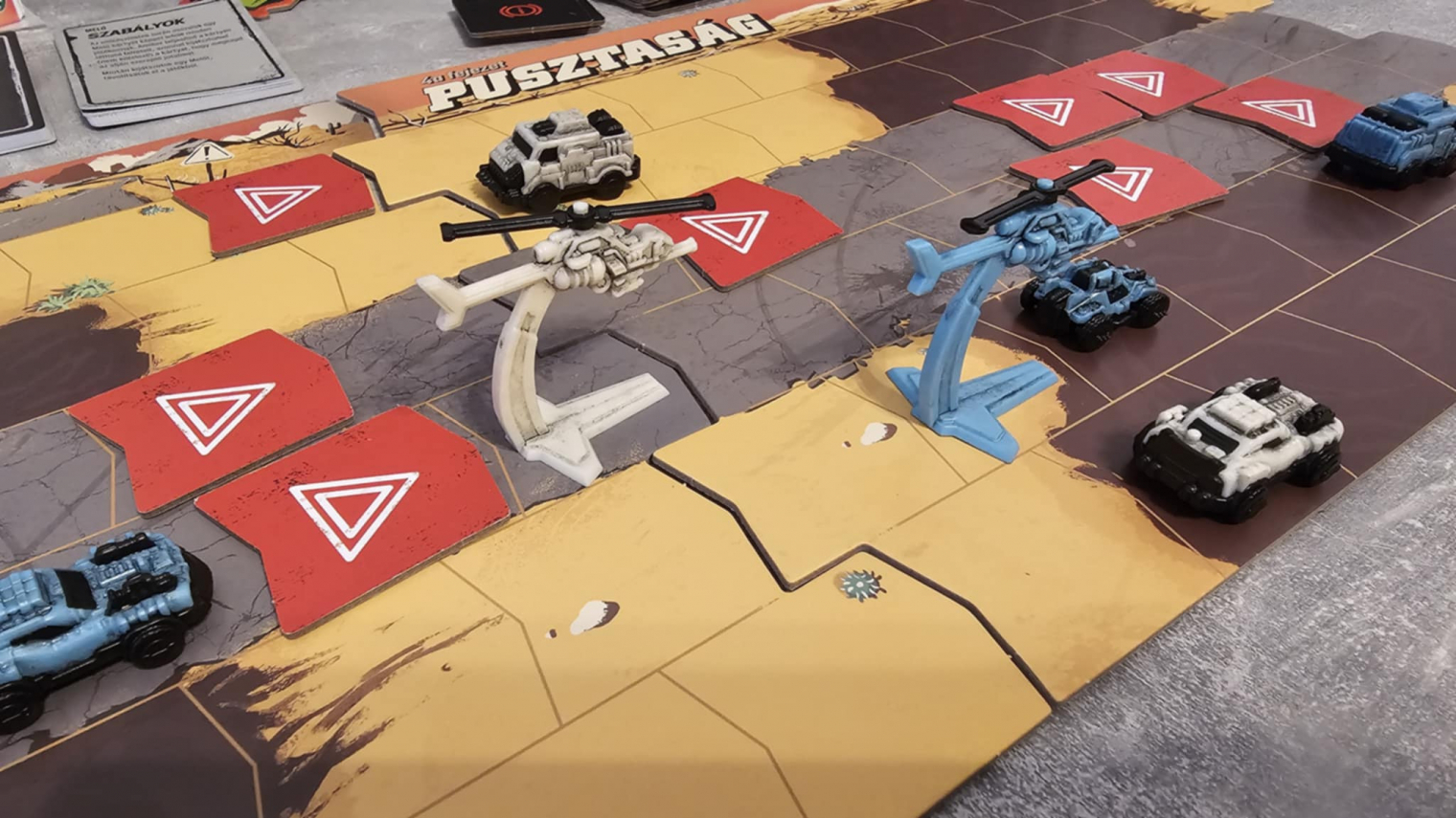 "Benzinpermetes adrenalinturmix egyetlen dobozba sűrítve" - nagyjából így lehetne leírni első benyomásra a Thunder Road: Vendetta élményét, amely a nyolcvanas évek posztapokaliptikus filmes dühét, a Mad Max poros kietlenségét és a könnyed, mégis taktikus versenyjátékok lendületét elegyíti egy olyan keverékké, amelytől egyszerre válik hangosabbá a nappali és gyorsabbá a szívverés. A Restoraton Games modern újragondolása (ami hazánkban a Gémklub gondozásában jelent meg) nem egyszerűen feltámasztja az eredeti, 1986-os klasszikust, hanem új életet lehel belé, friss szabályokkal, okosan modernizált mechanikákkal és nagyvonalú komponensekkel, hogy a játék minden egyes kilométere egyre vadabb és őrültebb legyen. A játék lényege továbbra is az, hogy a saját autóflottáddal túléld a rázós, roncsokkal és ellenséggel teleszórt országutakat, miközben mindenki más ugyanarra törekszik: elszáguldani előtted, elgázolni, felrobbantani, vagy egyszerűen beledobni egy kráterbe, hogy a helyedre furakodva elsőként érje el a célvonalat.